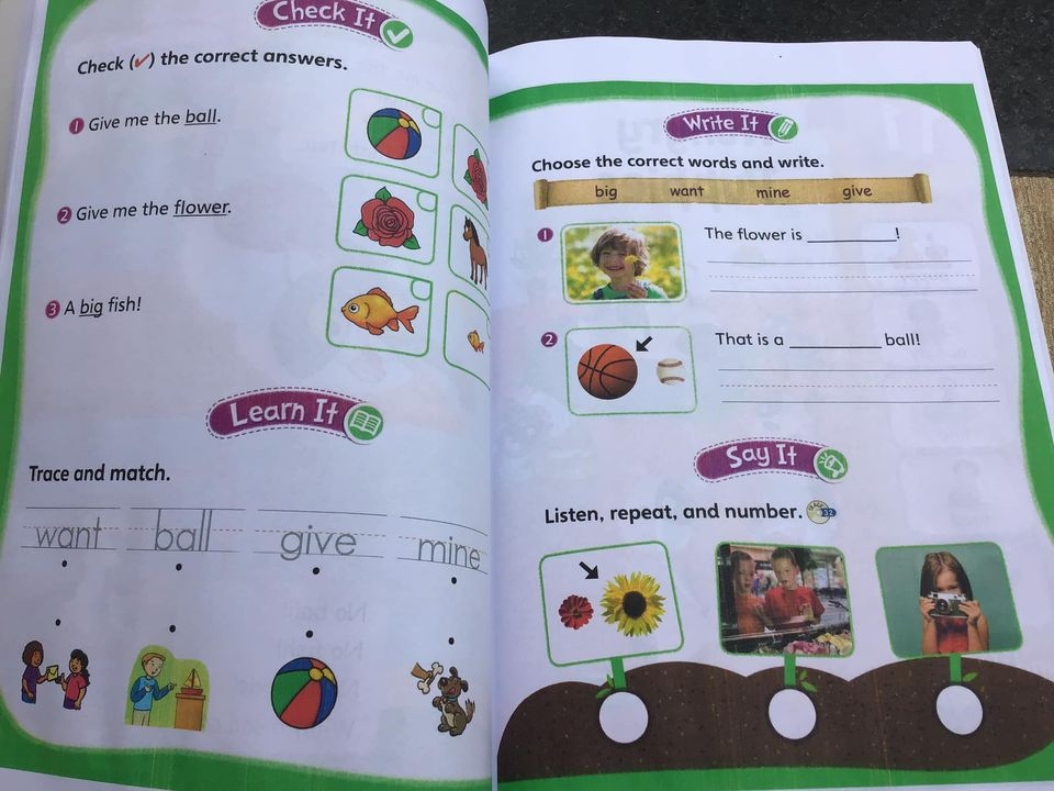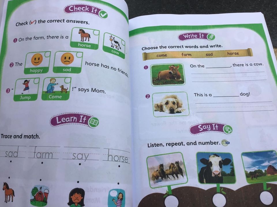 - Sách được thiết kế với phần bài đọc dễ hiểu. Với mỗi bài học, con sẽ ghi nhớ từ vựng qua phần bài đọc, chơi trò chơi tìm từ và đồ vật v.v... để kiểm tra đọc hiểu.