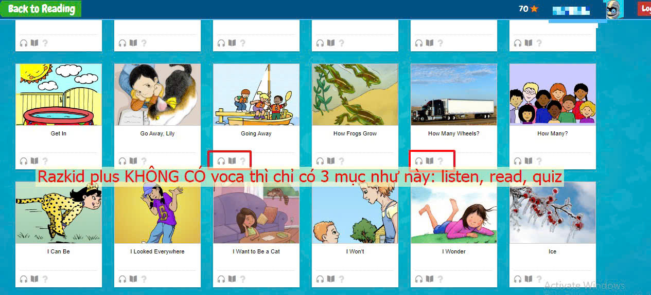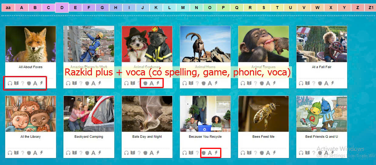 Với mỗi một cuốn sách Raz-Plus, trẻ có thể thực hiện các hoạt động cơ bản sau: