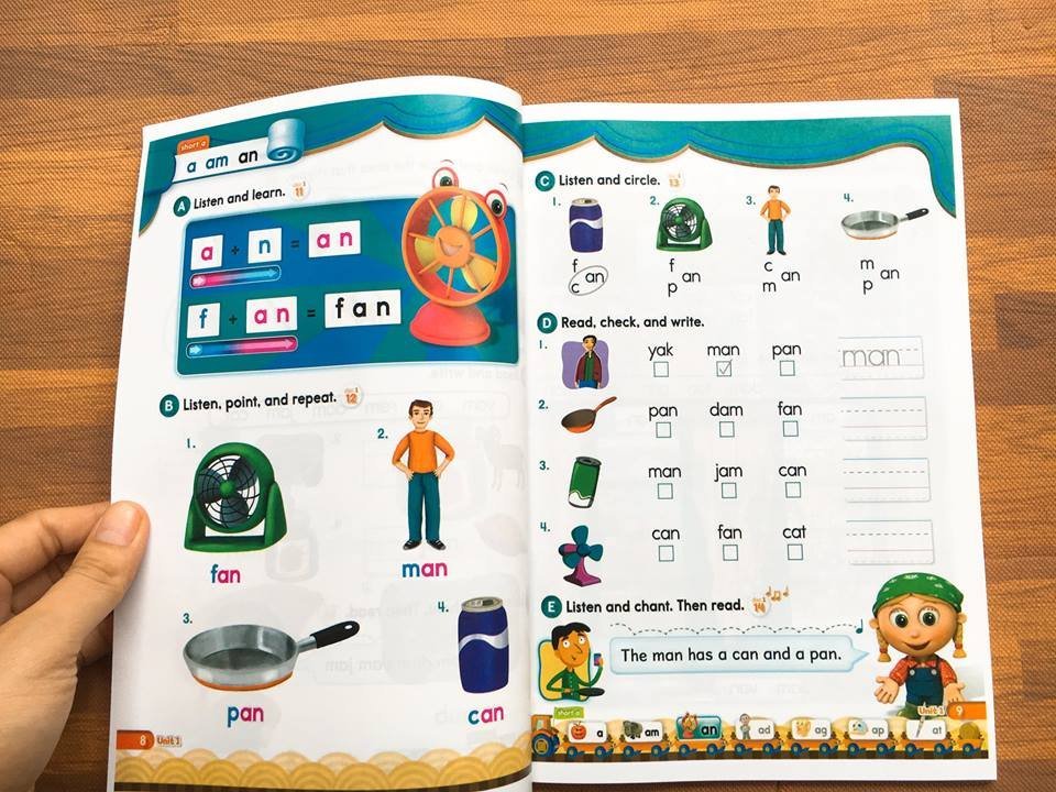 ✓ Các hoạt động được thể hiện trong bộ giáo trình (Video, MP3 và sách) sẽ giúp trẻ phát triển các kỹ năng: Nghe, Nói, Đọc, Viết và Đánh Vần đồng thời giúp trẻ áp dụng tiếng Anh vào thực tế.